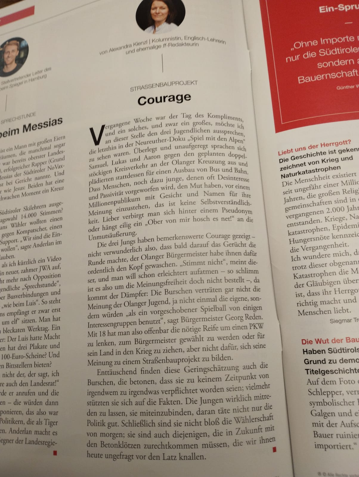 Leserbrief in FF-43, Florian Leimgruber: downloadStraßenbauprojekte und jugendliche Courage
